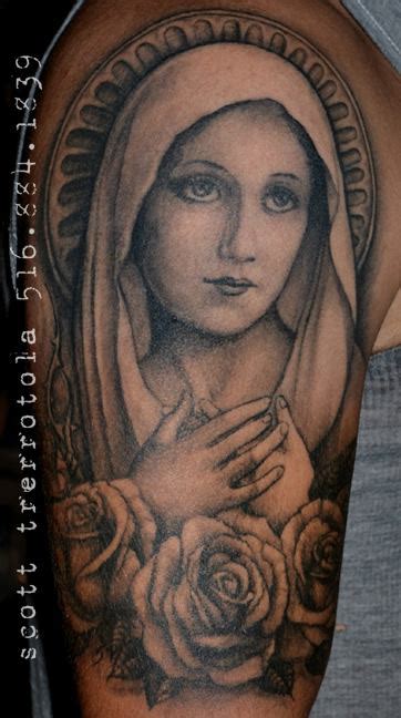 Blessed Mother Tattoo Designs, Grey shaded joined hands blessed tattoo on upper sleeve for men. See more ideas about mary tattoo, blessed mother mary, blessed mother.