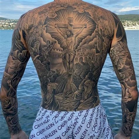 Black and grey 3d jesus on cross tattoo on man full back. Incredible crown full back tattoo; Black and grey 3d rosary cross tattoo on shoulder A small tattoo on your wrist might bring you down 50 bucks but a full back tattoo will cost an average of 2000 to 5000 and upwards. Wolves are always a good tattoo idea.